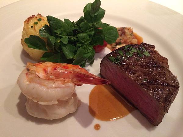燒烤特級牛排與虎斑大明蝦檸檬奶油沙司